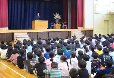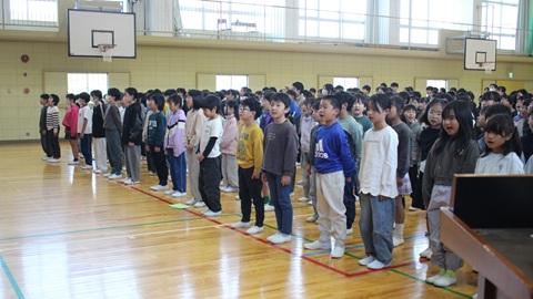 3月24日(火)午前、体育館で令和7年度修了式を行いました。5、3、1年生の代表児童が3学期や1年を振り返ってがんばったことやこれから取り組みたいことなどを発表しました。どの子もとても堂々と発表していました。校長先生からは、学校スローガン「本いっぱい花いっぱい歌いっぱい」で学校が元気になってきたことやSDGs児童ボランティアに取り組む子が増えてきて素晴らしいですとお話がありました。全校で歌った校歌もたいへん大きな声で素晴らしかったです。4月に元気に登校してきてください。