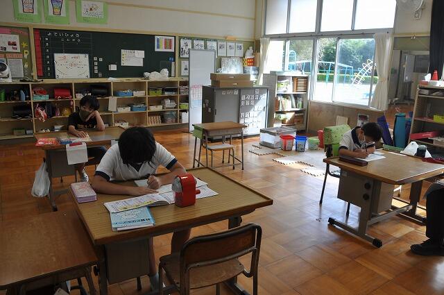 たんぽぽ組2時間目、算数。それぞれに合わせて出された課題に、夢中で取り組んでいました。集中のための間仕切りがされ、すばらしい集中力で勉強を進めていました。