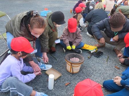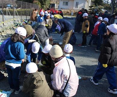 1月30日(金)午後、3年生が「シニア活動」で、地域のお年寄りの方と、昔の生活をテーマにした交流をしました。前半は、小刀を使って鉛筆を削る体験です。後半は、七輪を使って火を起こしてお餅を焼く活動です。マッチを使って火をつけました。どの家庭でも、小刀やマッチなどを使う機会があまりなくなってきています。社会科で昔のくらしや道具を学習する内容があって、それを体験するものです。子どもたちは、なれない手つきで小刀を使い、マッチを擦って火をつけていました。最後は、焼いたお餅を美味しそうに頬張っていました。貴重な体験の支援をしていただいたシニアの皆様、本当にありがとうございました。
