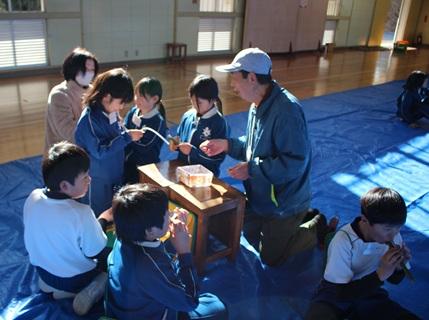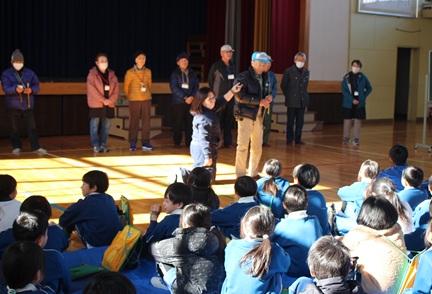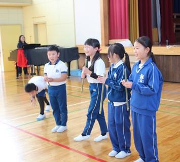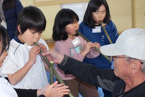 1月23日(金)午後、3年生が、地域のお年寄りとの交流活動(シニア交流活動)を行いました。これまで、どんぐりごまを作ったりする活動などをしてきましたが、今回は竹の笛をつくりました。地域のお年寄りの方に来ていただいて、「まじない笛」「ぶた笛」を2種類の作り方や吹き方を教えていただきました。後半では、作った笛で発表会をしました。どの子も上手に音を出せるようになっていました。自然のものを使って、工夫して遊ぶものを作るのは、子どもたちだけではなかなかできない活動です。ボランティアに来てくださった皆様、本当にありがとうございました。