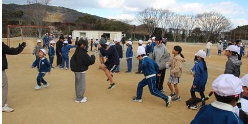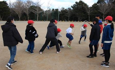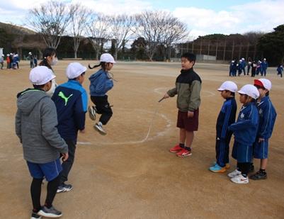 1月29日(木)昼休み、縦割り班活動で長縄跳びの練習をしました。2月上旬に予定されている「NAGANAWAチャレンジデイズ」に向けて、普段は学級ごとに練習していますが、今日は縦割り班でも練習しました。高学年の子が低学年の子にタイミングを教えてあげたり、お手本を見せたりして、お兄さんお姉さんが頑張っています。寒い日が続いていますが、みんな元気よく跳んでいました。