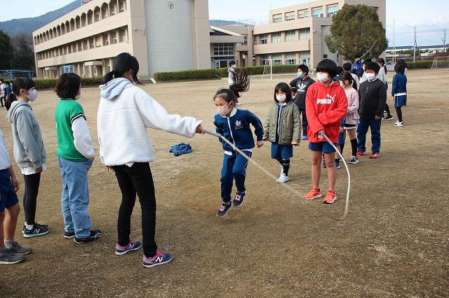 昼放課の時間に、全校で長縄の練習を行いました。