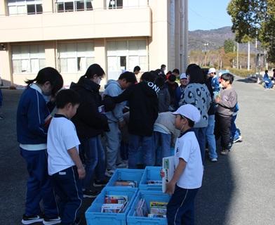 2月4日(水)昼、市の移動図書館「いずみ号」がやってきました。立春を迎え比較的温かな日になり、長縄跳びの練習にグランドへ出ていく子と「いずみ号」に集まる子がたくさんいました。学級文庫の入れ替えだけではなく、個人で借りたい子もたくさんいます。いずみ号の中の本棚には、学校図書館にない本もたくさんあります。興味のある本を借りてみるといいですね。