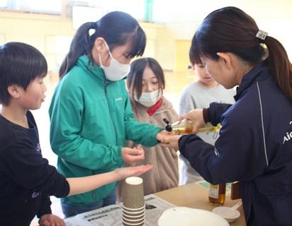 2月4日(水)午後、4年生の学級が、市役所環境政策課の方を講師に「環境学習」を行いました。田原市の花「菜の花」の種から油を絞る体験や特定外来生物を知る学習などをしました。菜種油を使って作ったポップコーンを食べたり、特定外来生物を倒すゲームをしたりして、田原市の環境を守る取り組みについて、楽しく学習しました。