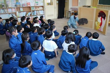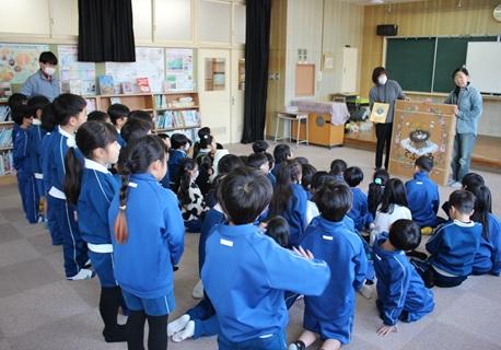 2月5日(木)授業の前に、ボランティアの方の読み聞かせがありました。大型絵本や紙芝居もありました。1年生は、段ボール絵本「てぶくろ」のお話でした。手作りの大型段ボール絵本に、子どもたちは、目を輝かせてお話の世界を楽しんでいました。ボランティアの皆様、本当にありがとうございました。