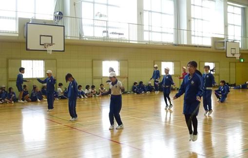1月14日(水)午前、5、6年生が短縄跳び大会を行いました。前半は、個人戦(前跳び、1分間各種目チャレンジ、後跳び)後半は、学級対抗二重跳びリレーです。二重跳びリレーでは、6年1組が優勝しました。体育の時間や休み時間を使って練習をしてきた成果をしっかりと発揮していました。2月の長縄跳びに向けても頑張っていきましょう。