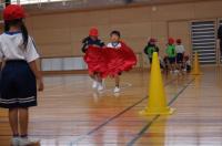 1,2年生は、運動会種目「それゆけデカパンマン」の練習を体育館で行いました。大きなデカパンを履いて2人組で力を合わせて走ります。デカパンを脱いで次の組に渡すこと、デカパンを素早く履くこと、なかなか難しいようです。赤組・白組に分かれて作戦を考える場面もありました。繰り返し練習するうちに上手になってきました。