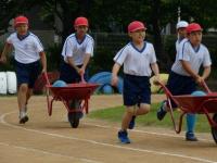 今年の運動会は、19日(月)平日開催となりましたが、多くの保護者の方にご参観いただけました。自治会種目の綱引きはできませんでしたが、PTA役員と教員の「綱引き」や、保護者の皆さんによる「多種目リレー」が行われて盛り上がりました。子どもたちは、自分の出場種目に真剣に取り組み、力いっぱい応援をしました。みんなで力を合わせてがんばりました。笑顔いっぱいの運動会でした。