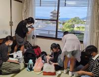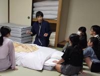 旅館に帰って、ふとんの敷き方を教えてもらいました。