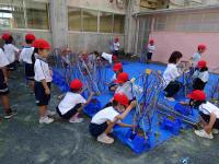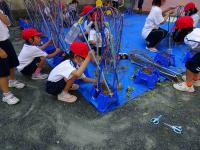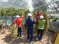 1年生は、夏の間育てていたアサガオの蔓を使って、リースを作るそうです。この日は、蔓を支柱から取り外す作業をしていました。考えながら一生懸命に取り組んでいました。