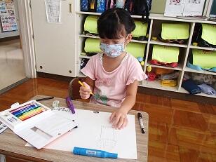 1年生は市民館に飾る絵を描いていました。