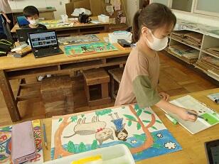 2年生は図工で「どうぶつさんといっしょに」の続きを進めていました。