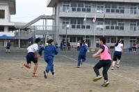 午前は、ラケットサンド折り返しリレーに始まり、みんなでジャンプで締めくくりました。