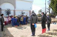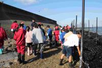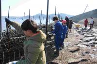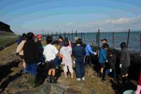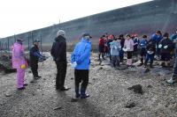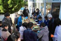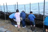 2月2日(月)、晴天の中、4人の漁師さんと一緒に海苔の収穫を行いました。子どもたちは、海苔がたくさんついていることに驚き、収穫にやりがいを感じていました。また、冷たい水の中での作業に漁業のたいへんさも感じていました。