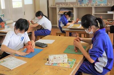 粘土をねじったり、ひねったりして動きのあるポーズを工夫しました。動きを捉えるために実際にポーズを取って作ります。下半身を太く大きく作って、ダイナミックな動きを表すよう頑張っていました。