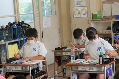 どの子も背筋を伸ばし、よい姿勢で書いていました。