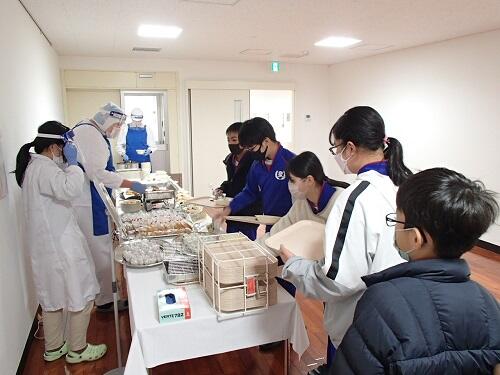 12月10日(火)に、6年生児童は、田原市給食センターの施設見学及びバイキング給食を行いました。給食の調理についての話を聞いたり、調理設備について説明を聞いたりしました。バイキング給食では、普段より品数の多い給食を食べ、楽しい時間を過ごしました。