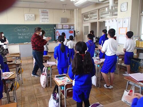 はじめに、白色のカスミソウを好きな色に染めました。そして、田原市で作られている花について、クイズ形式で学習しました。