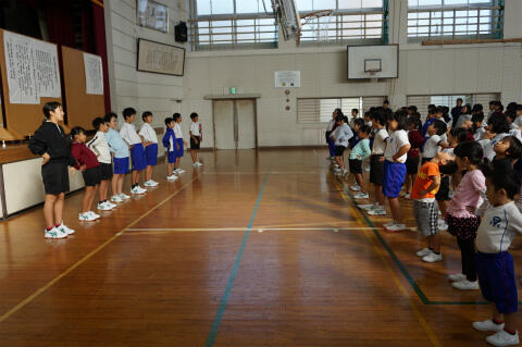 後半は、なかよしし班で8の字跳びで跳べる回数を競い合いました。3分間飛跳び続けるのを2回やって一番たくさん跳んだ班が優勝です。優勝は3班。3班は、全校のみんなから大きな拍手をもらいました。