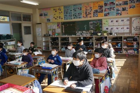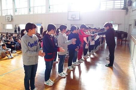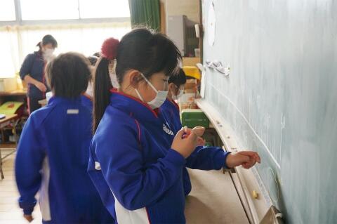 明日は、いよいよ卒業式。今日は、午後から4年生と5年生で卒業式の準備をしました。体育館の中、体育館の出入り口付近、トイレ、玄関、6年教室など、みんなで手分けして掃除したり、準備したりしました。