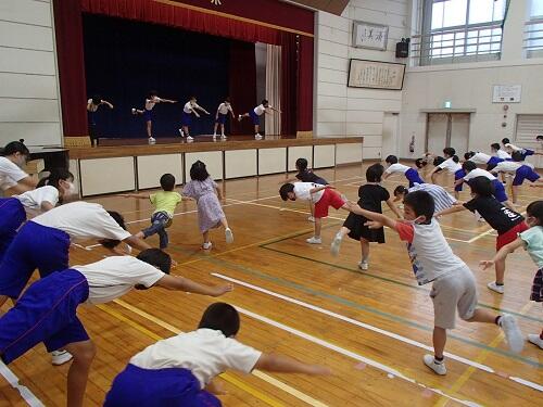 最後に、体育委員会のみなさんが、「リズムに合わせて体を動かそう」を行ってくれました。みんなで、音楽に合わせて体を動かしました。