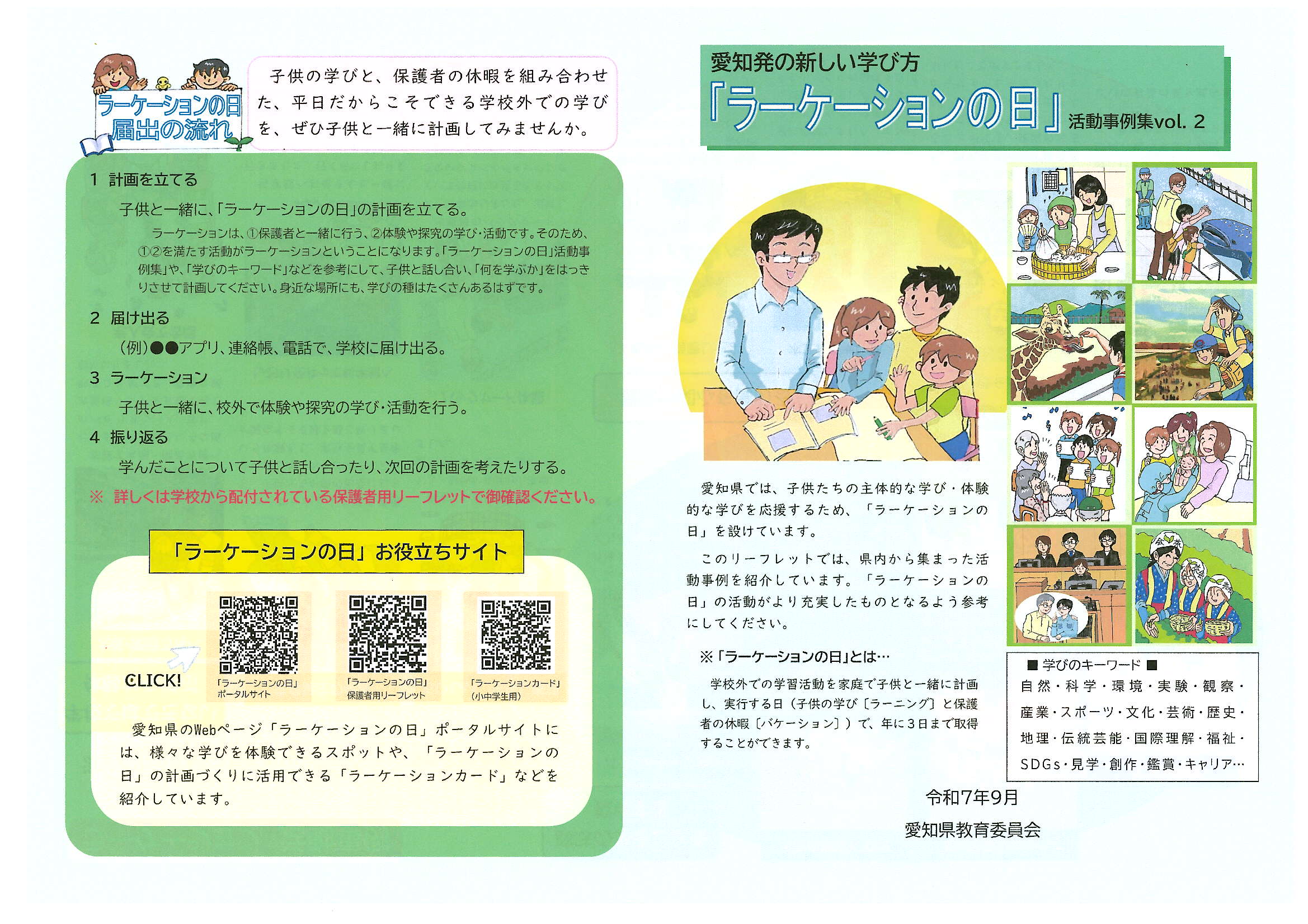 愛知県教育委員会にて作成された『「ラーケーションの日」活用事例集vol.2』になります。 |