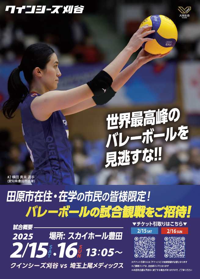 | タイトル | 「クインシーズ刈谷」ホームゲームへの田原市民観戦招待について |