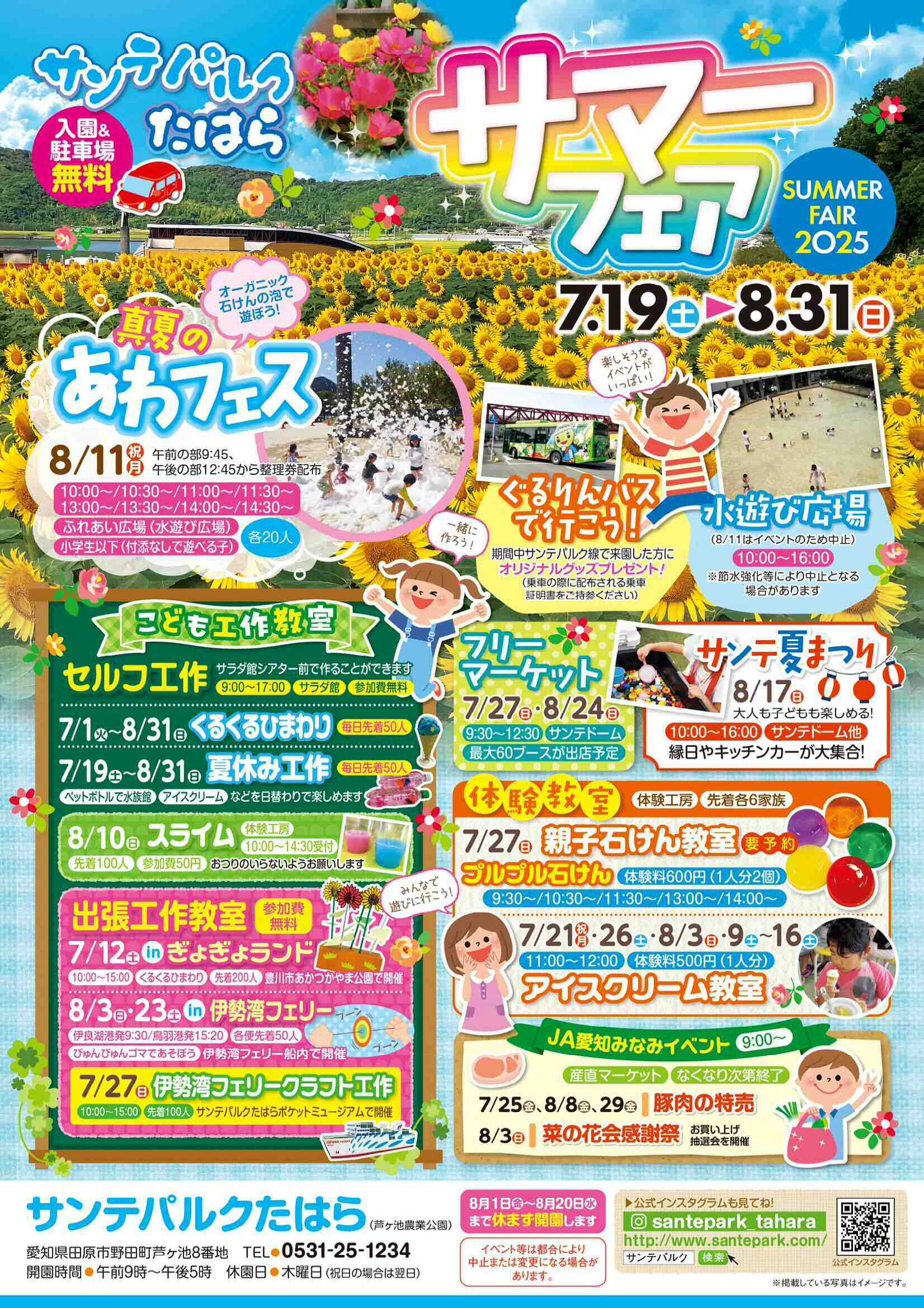 サンテパルクたはらが主催する「サマーフェア」のチラシです。サンテパルクにて7月19日(土)から8月31日(日)に開催されます。 |