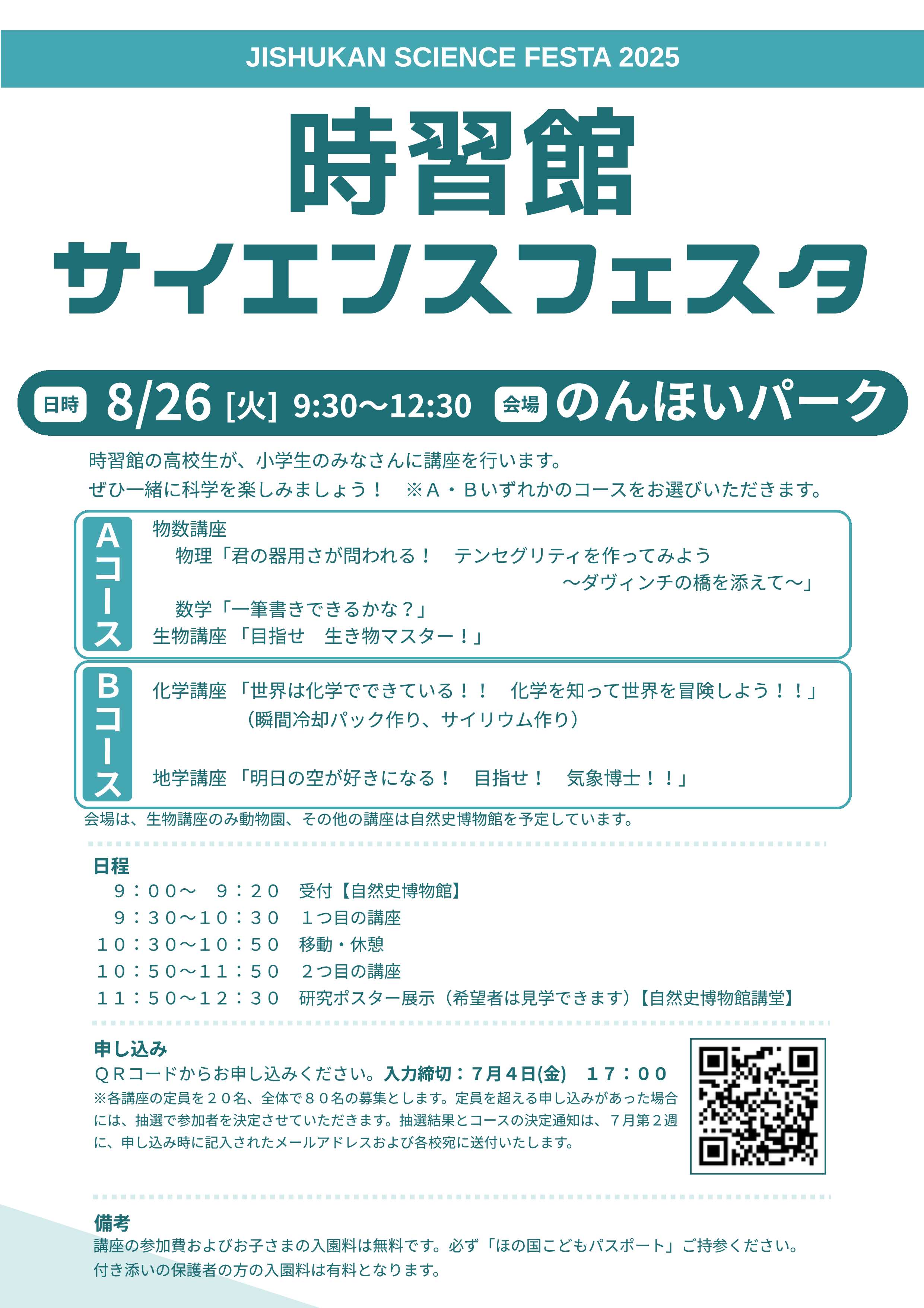 タイトル 「時習館サイエンスフェスタ」のチラシについて