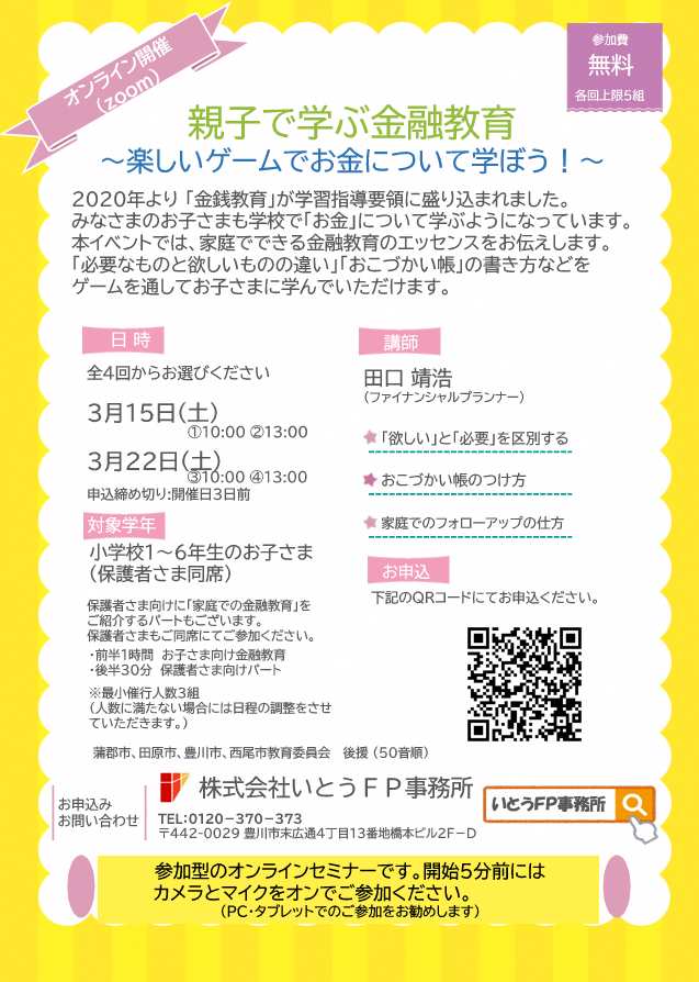 | タイトル | 「親子で学ぶ金融教育~楽しいゲームでお金について学ぼう!~」のチラシについて |