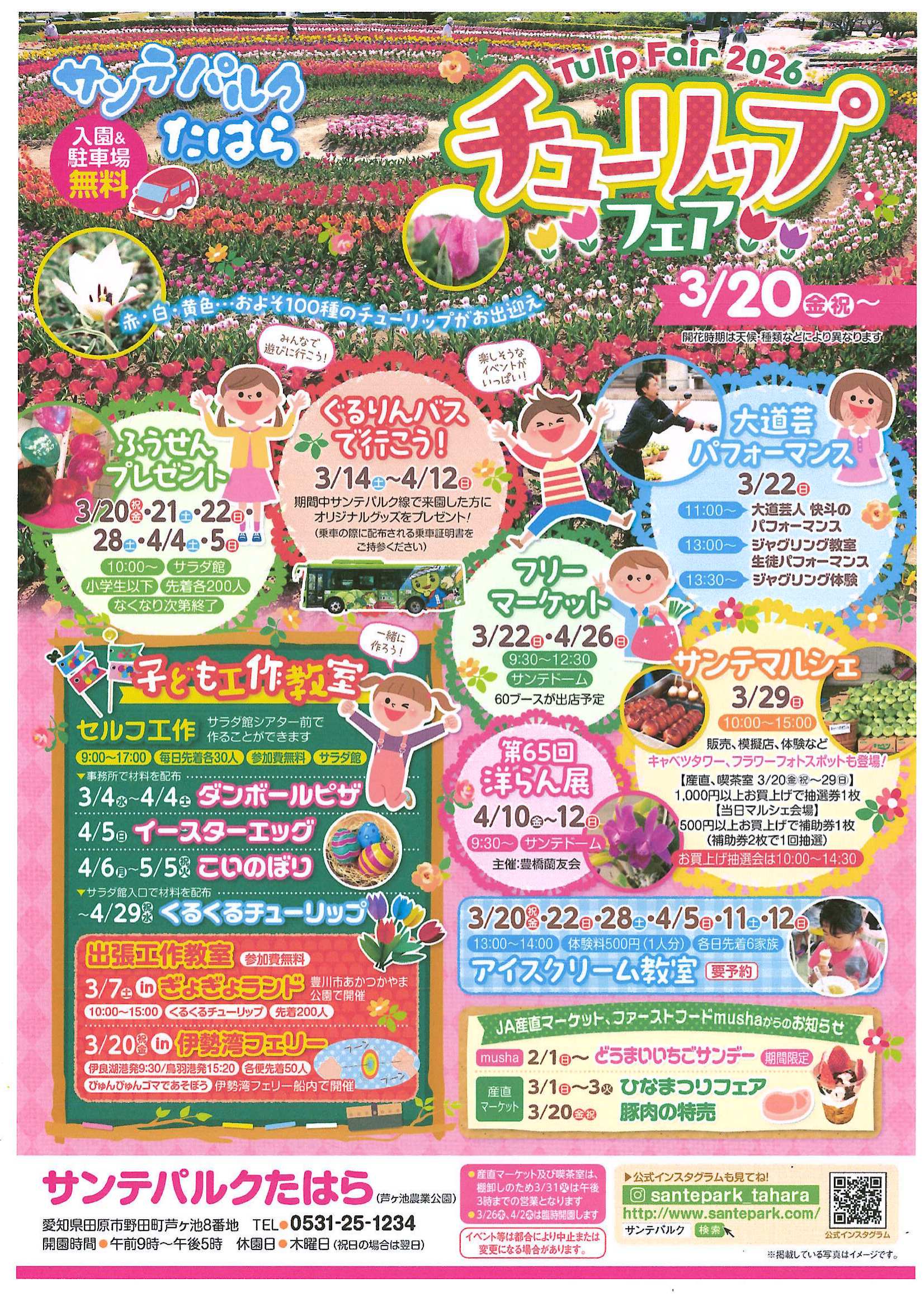 サンテパルクたはらが主催する「チューリップフェア」のチラシです。3月20日(金)から開催されます。 |