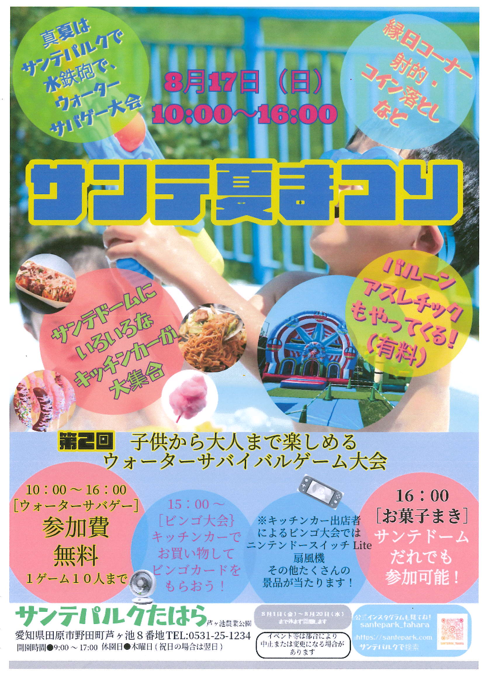 サンテパルクたはらが主催する「サンテ夏祭り」のチラシです。8月17日(日)に開催されます。