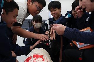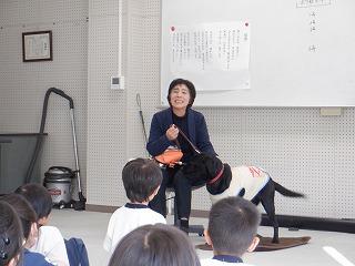 12月9日、実際に盲導犬のユーザーである講師の先生をお迎えして、盲導犬教室を行いました。はじめに、病気のため目が見えなくなった経緯や、盲導犬のできることやできないことについて教えていただきました。