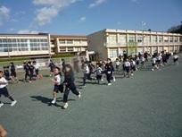2時間目が終わると、対象の学年がグランドで5分間走り続けます。