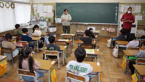 12月1日(月)、ALTの先生が英語の授業でいくつかの教室を回りました。12月になったので、クリスマスを思わせるサンタクロースの格好をして授業に参加しました。クリスマスや冬にまつわる言葉や欧米の文化についてたくさん勉強しました。いよいよ年末らしい雰囲気になってきました。一段と寒くなってきています。インフルエンザが流行してきていますが、感染対策をして負けないように体調管理にきをつけていきましょう。