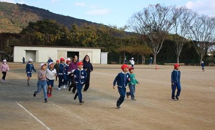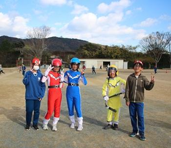 12月5日(金)2時間目の後の休み時間、体力づくり週間でたくさんの子がグランドへ出て、体を動かしています。衣レンジャーとクスるんがグランドに登場して、体力づくり週間を盛り上げてくれました。冬らしく寒い日になってきましたが、来週の絆マラソン大会に向けて走っている子たちもたくさんいます。寒さに負けないように体を鍛えていきましょう。