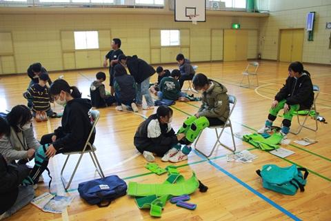 12月10日(水)午前、6年生が学級ごとに「福祉実践教室」として、田原市社会福祉協議会の方を講師に高齢者疑似体験をしました。高齢になると、手足が動かしにくくなったり、視野が狭くなったりすることを体験しました。子どもたちは、体験を通して、思っていた以上に動けなかったり見にくかったりすることに気づきました。身近にお年寄りがいる子も少なくないですし、地域にもお年寄りの方がたくさんいらっしゃいます。学んだことを生かして接するといいですね。