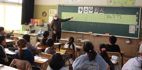 12月10日(水)午後、4年生が、学級ごとに「福祉実践教室」として、視覚障害者支援団体の方を講師に、点字教室を行いました。点字の打ち方や障害者のマークについて教えていただきました。点字にはいろいろなルールがあって、子どもたちは手こずっている様子でしたが、点字の本があることやそれを作っている人がいることに気づきました。視覚障害の方だけでなく、様々な障害者を表す国際的なマークについても学びました。知っておくと、障害のある方に接するときに配慮ができますね。
