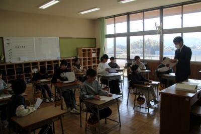 グループになってクイズ、文集や色紙のプレゼント、6年生からの歌のプレゼントがありました。