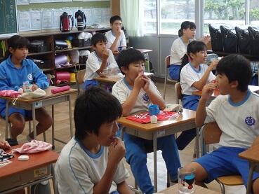 9月20日(木)校医の大河先生に5,6年生が歯科指導をしていただきました。歯と歯の間の歯垢は、歯みがきではとれないので、実際に糸ようじを使用した磨き方の体験をしました。また、歯垢の中で動いている菌を顕微鏡で見せてもらうと「気持ち悪~い」とつぶやいていました。歯みがきの大切さを改めて実感した学習になりました。