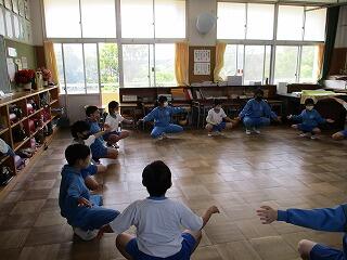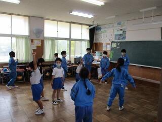 今朝の練習は、相撲体操です。縦割り班に分かれて教室で伝達講習。高学年の人から詳しい動きを教えてもらいます。「そんきょ」や「またわり」など普段の生活では聞きなれない言葉が飛び交います。最初は難しく感じたようですが、動きをまねしているうちに格好良くなってきました。本番までにしっかり覚えてほしいです。