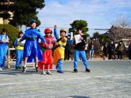 12月11日(木)に、「スマイルランニングフェスティバル」が行われました。晴天・無風の最高の天候に恵まれ、全校児童が一人も欠けることなく全力で走りきることができました。開会式では、大草レンジャーのほかに算数の授業に登場するブラックレンジャーが登場し「みんなで協力して走ってみろ」というような課題を出していきました。開会式後には「みんなで走ろう!スマイルランニング」が行われ、3分間親子で走る姿が微笑ましかったです。「みんなでつなごう!スマイルランニングフェスティバル」では、みんなが試走より速く走る姿がみられました。また、同じ縦割り班の子を応援するだけでなく、最後までがんばって走りぬこうとする子を応援する姿もみられ、ブラックレンジャーからでた課題も克服できた素敵なイベントとなりました。走り終わった後には、PTA委員さんが作ってくれたココアを飲み、とても温かい気持ちになりました。