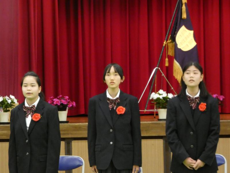最後のお別れの歌として「1ページ」(本校勤務の斎藤先生ご自身の作詞作曲)を卒業生が在校生へ歌ってくれました。