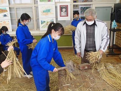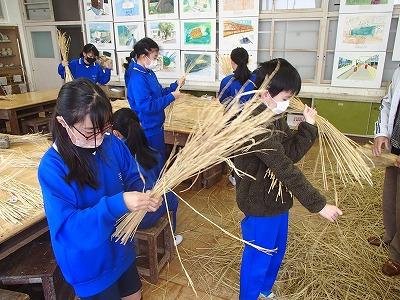 12月10日 地域の伊藤さんに、しめ縄作りを教えていただきました。