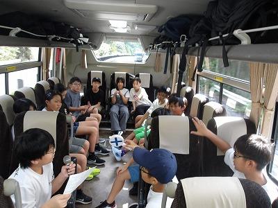 18日バス移動中でのレクレーション。バスの座席を移動させ、レク係が準備したゲームで楽しみました。