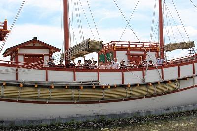 昼食をすませ、遣唐使船に乗船。多くの人が遠い国に渡ったことを思い浮かべました。