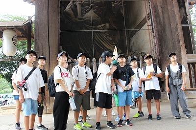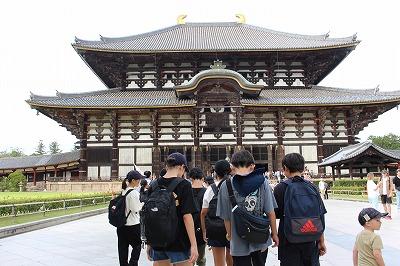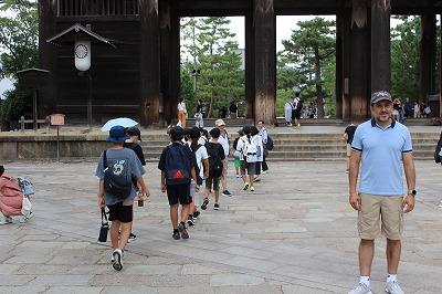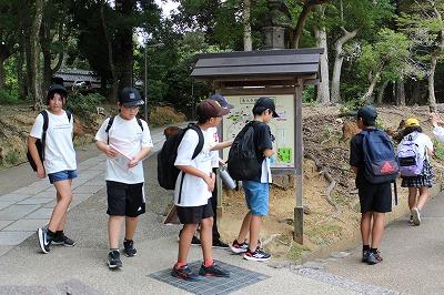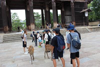 大仏殿の見学後は、いよいよグループでの分散学習へ。春日大社を目指して、出発。奈良公園の鹿にせんべいをあげました。見学の途中で雨に降られ雨宿り。見学先を変更して博物館見学をした班もありました。