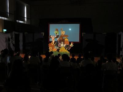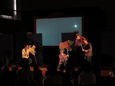 インドネシアの伝統芸能の影絵芝居を取り入れた演劇で、主人公の男の子が家族のために動物たちのことを考えて行動し、成長していく物語です。