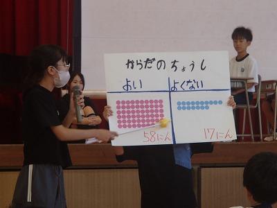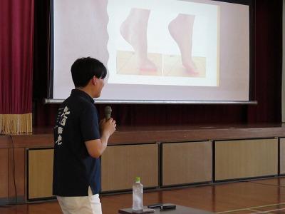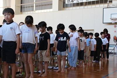 最後に、健康環境委員長から、姿勢トレーニング「足指歩き」が上手にできている子の発表がありました。