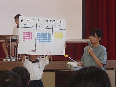健康・環境委員会からは、「ごはん」を食べて元気に登校しましょうと「ごはんたべようキャンペーン」についてお知らせがありました。